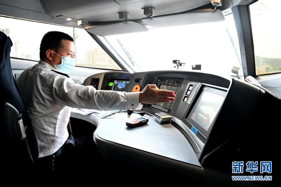 11月23日,司机温九林在福州南站的综合检测车上做准备工作。
