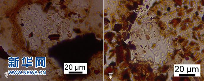 考古人员在河南淮阳时庄遗址仓储遗迹底部检测出的粟、黍类作物成分。新华社发(河南省文物考古研究院时庄遗址考古队供图)