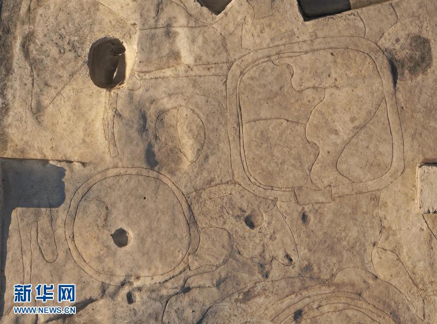 河南淮阳时庄遗址发现的圆形及圆角方形仓储遗迹(上为北)。新华社发(河南省文物考古研究院时庄遗址考古队供图)