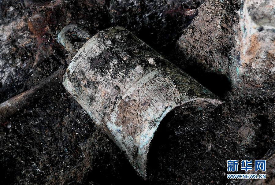 这是河南洛阳徐阳墓地标号为M15的墓葬出土的编钟(11月27日摄)。