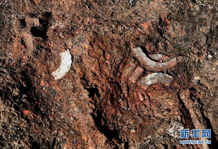 这是河南洛阳徐阳墓地标号为M15的墓葬出土的玉璜(11月27日摄)。