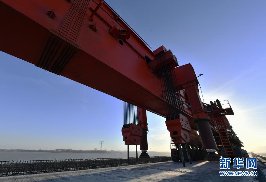 这是12月2日拍摄的新建福厦铁路湄洲湾跨海大桥施工现场。新华社记者魏培全摄