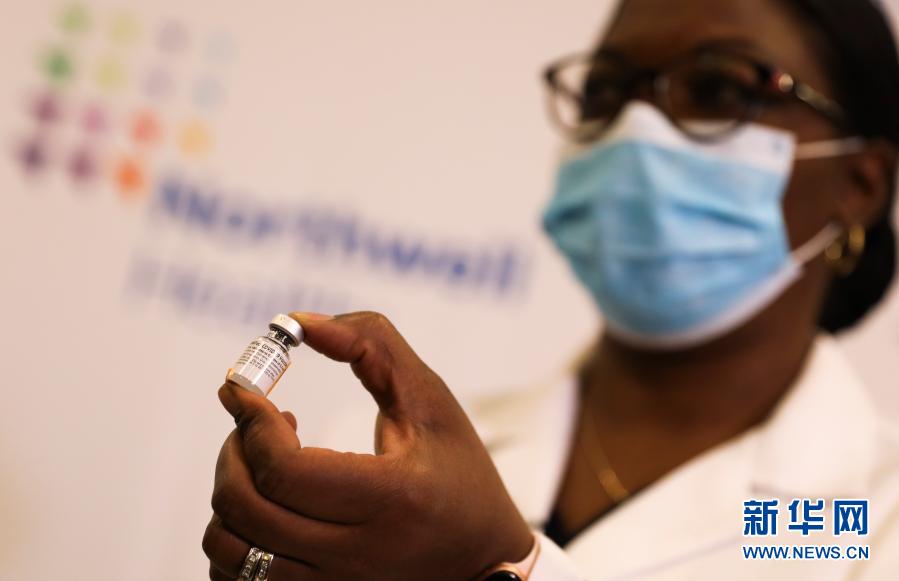 12月14日,在美国纽约长岛犹太医疗中心,一名医护人员为新冠疫苗接种作准备。新华社记者王迎摄