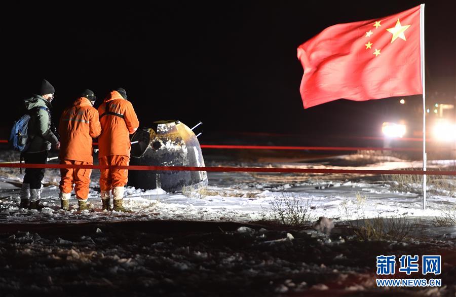 12月17日凌晨,嫦娥五号返回器携带月球样品,采用半弹道跳跃方式再入返回,在内蒙古四子王旗预定区域安全着陆。 新华社记者 任军川 摄