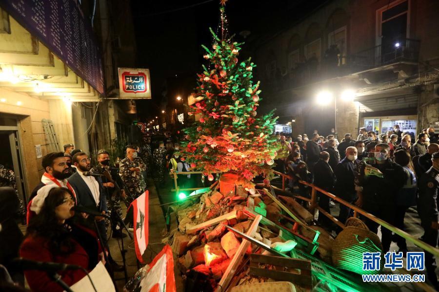 黎巴嫩:废墟前立起圣诞树缅怀逝者