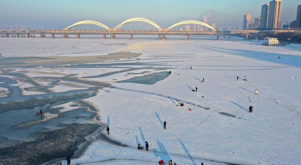 冬季松花江成然游乐场 游客市民冰面寻乐