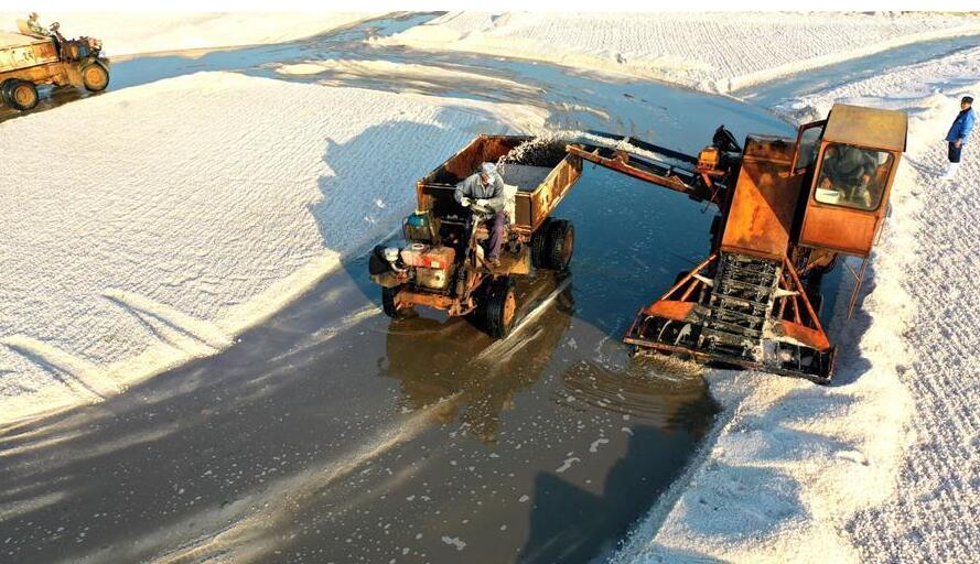 山东青岛:千亩盐田收获忙