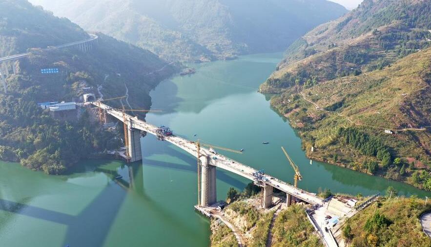 郑万高铁重庆段汤溪河双线大桥合龙