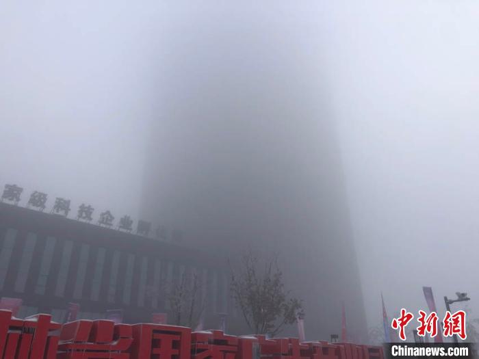 城中建筑物在雾气的笼罩下“消失”不见。 孙博妍 摄