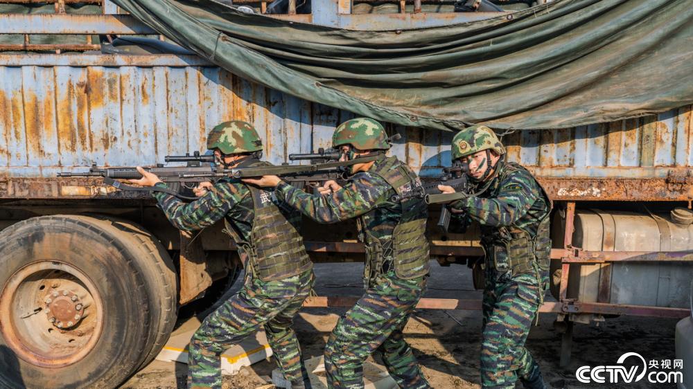 特战队员正在交替掩护搜索前进。
