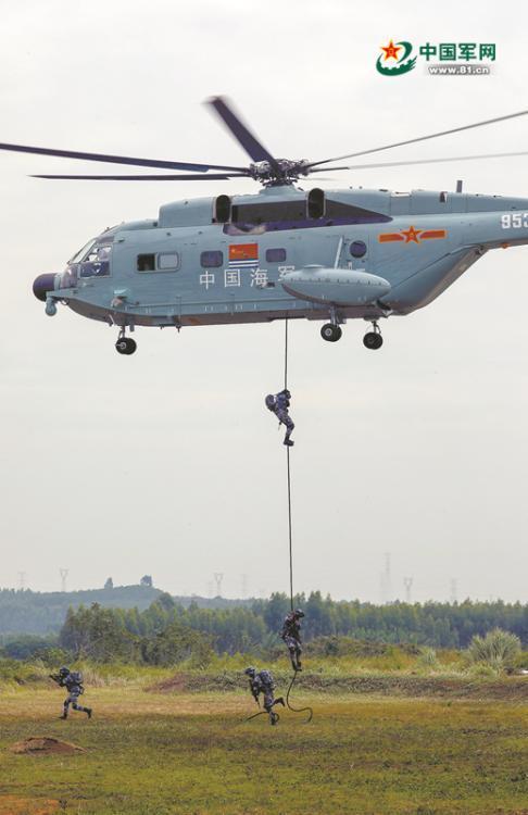 空中突击分队实施机降。高国敬 李翰林 解放军报特约记者 牛涛 摄影报道
