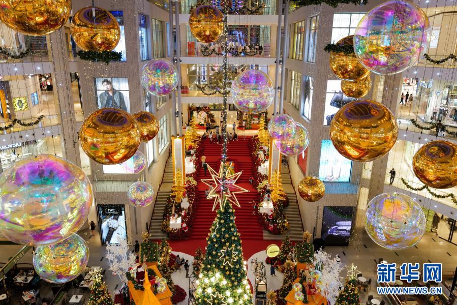 这是11月26日在马来西亚吉隆坡一家商场拍摄的圣诞节装饰。随着圣诞节临近,吉隆坡节日气氛渐浓。新华社记者 朱炜 摄