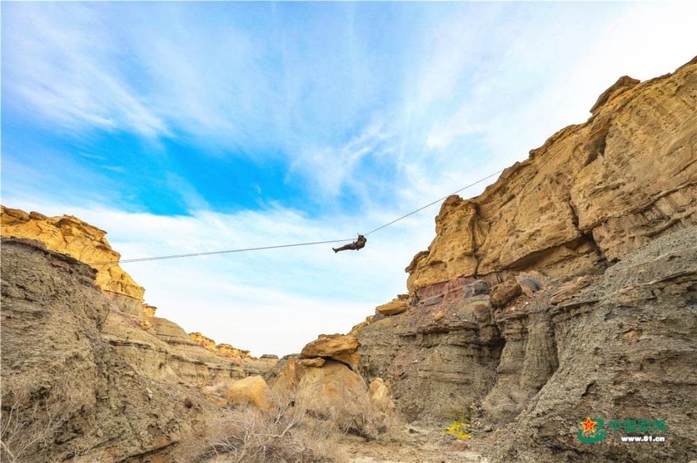 利用绳索通过山谷。谢万锋 摄