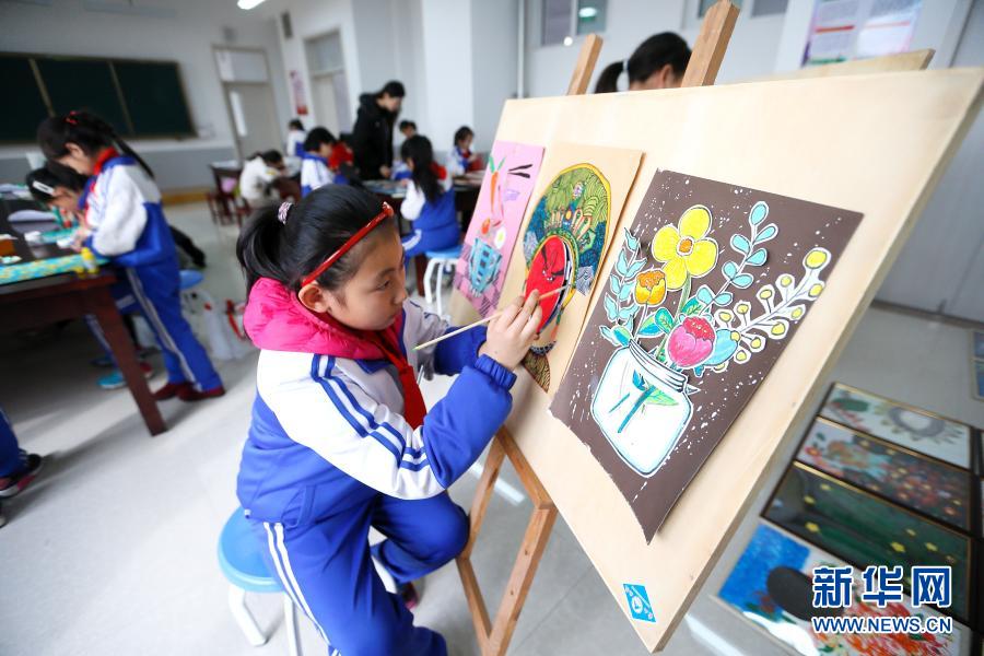 12月1日,山东省青岛市即墨区龙山中心小学手工社团的学生在创作作品。