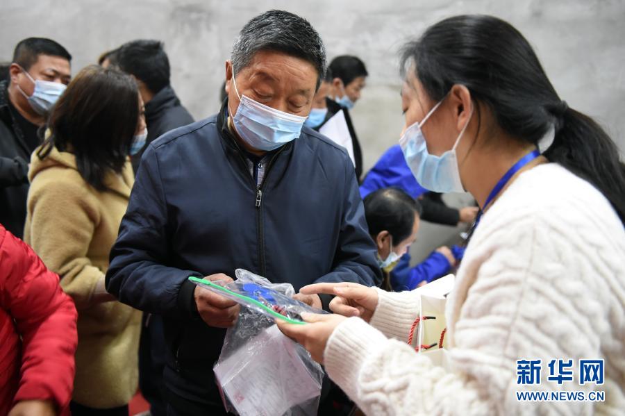 12月1日,合肥市包河区骆岗街道工作人员(右)将新房钥匙交给回迁居民。