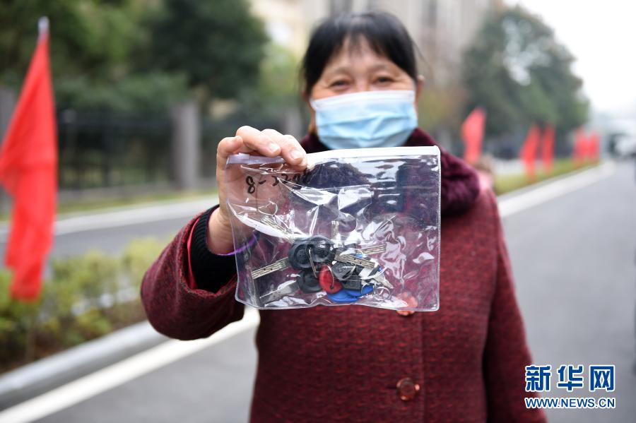 12月1日,合肥市包河区回迁居民展示刚拿到的新房钥匙。