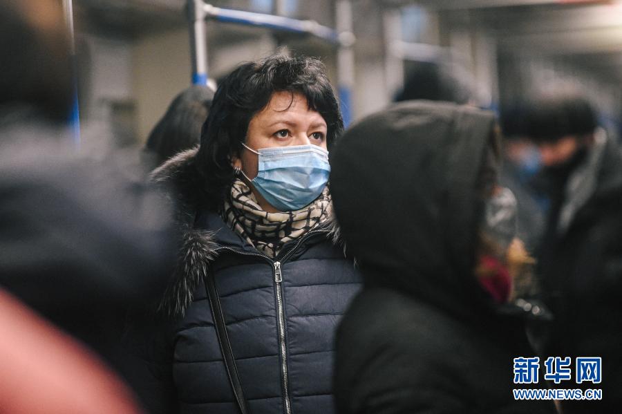 12月4日,在俄罗斯首都莫斯科,人们戴着口罩乘地铁。