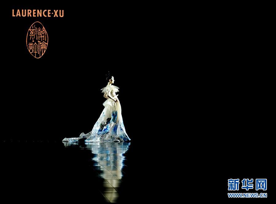 12月5日,模特在展示高级定制时装设计师劳伦斯·许设计的时装。 当日,在济南举行的第二届“泉城风尚”国际时装周上,高级定制时装设计师劳伦斯·许带来一场以故宫为设计源泉的新国风华服秀。 新华社记者 陈建力 摄