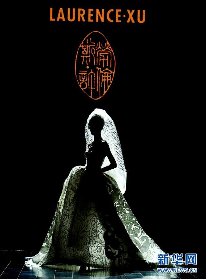 12月5日,模特在展示高级定制时装设计师劳伦斯·许设计的时装。 当日,在济南举行的第二届“泉城风尚”国际时装周上,高级定制时装设计师劳伦斯·许带来一场以故宫为设计源泉的新国风华服秀。 新华社记者 陈建力 摄