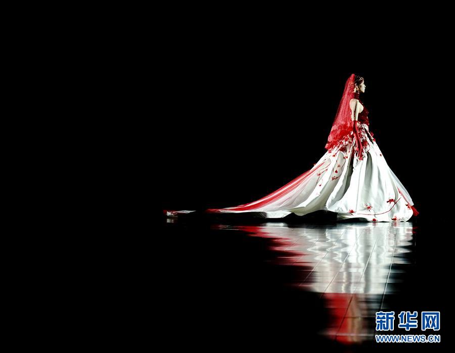 12月5日,模特在展示高级定制时装设计师劳伦斯·许设计的时装。 当日,在济南举行的第二届“泉城风尚”国际时装周上,高级定制时装设计师劳伦斯·许带来一场以故宫为设计源泉的新国风华服秀。 新华社记者 陈建力 摄