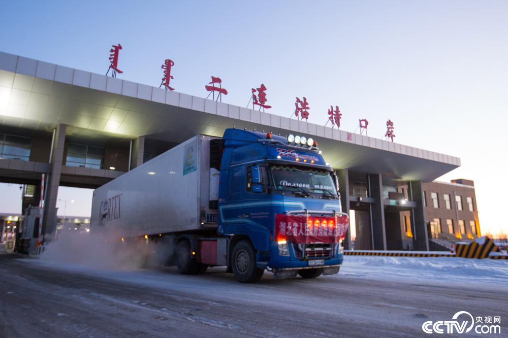 12月14日,一辆从湖北始发的装有3万人份核酸检测试剂盒、3台PCR检测仪等防疫物资的冷藏车抵达二连浩特。这些防疫物资承载着湖北人民对蒙古国人民的深情厚意和牵挂。此前,蒙方为支持中方抗疫赠送3万只羊。为感谢蒙古国对中国抗疫的鼎力支持,湖北省近日向蒙古国捐赠防疫和生活物资。 (郭鹏杰 摄影报道)