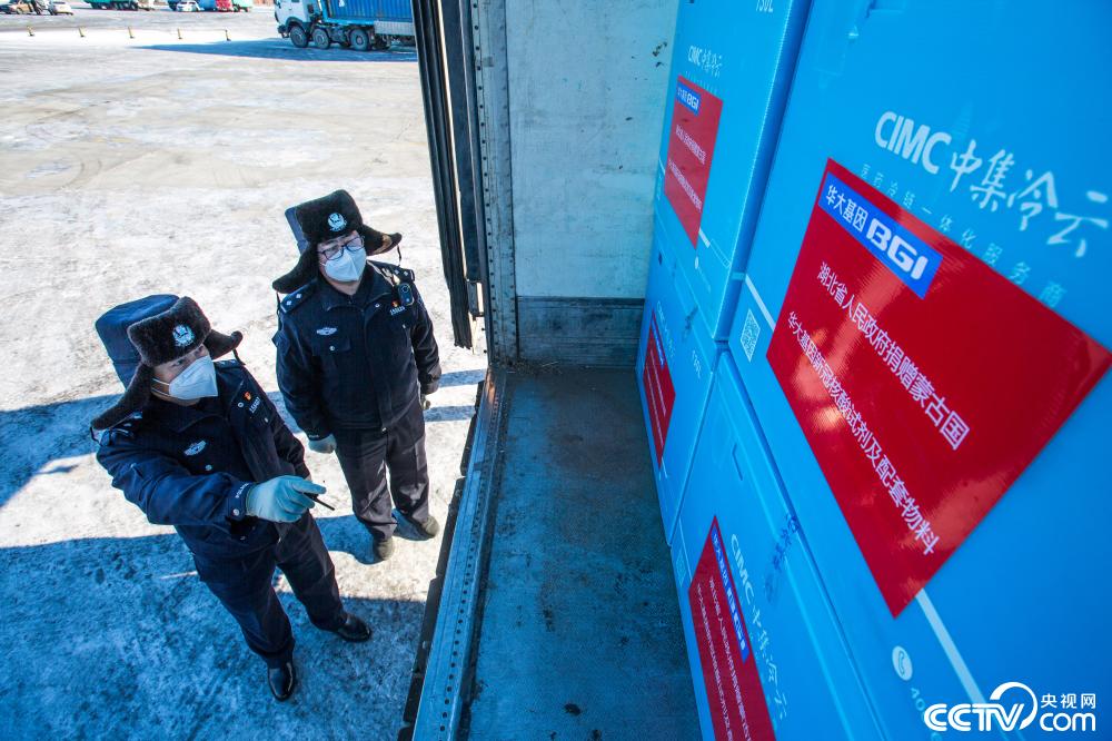 央视网消息:12月15日,载着湖北省捐赠蒙古国防疫物资的车辆从二连出入境边防检查站通关。内蒙古出入境边防检查总站二连出入境边防检查站开通防疫物资专用通道,采取专人专岗,优先查验的方式,第一时间为载运防疫物资车辆办理了边防检查手续,确保捐赠防疫物资以最快的速度送往蒙古国疫情防控一线。