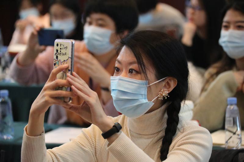 分享会上认真学习的女记者 解放军新闻传播中心 何友文 摄