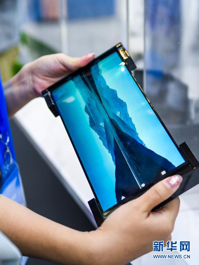 11月11日,在第二十二届中国国际高新技术成果交易会上,京东方的工作人员展示可以收纳拉伸的曲面屏。