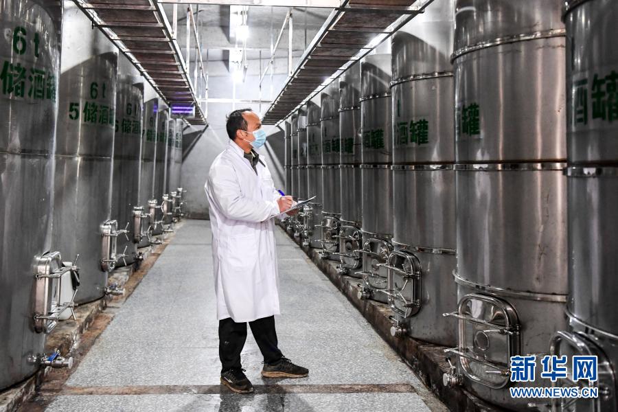 广西罗城仫佬族自治县东门镇冲洞村村民莫朴在莫宏灯的葡萄酒厂内登记数据(12月16日摄)。