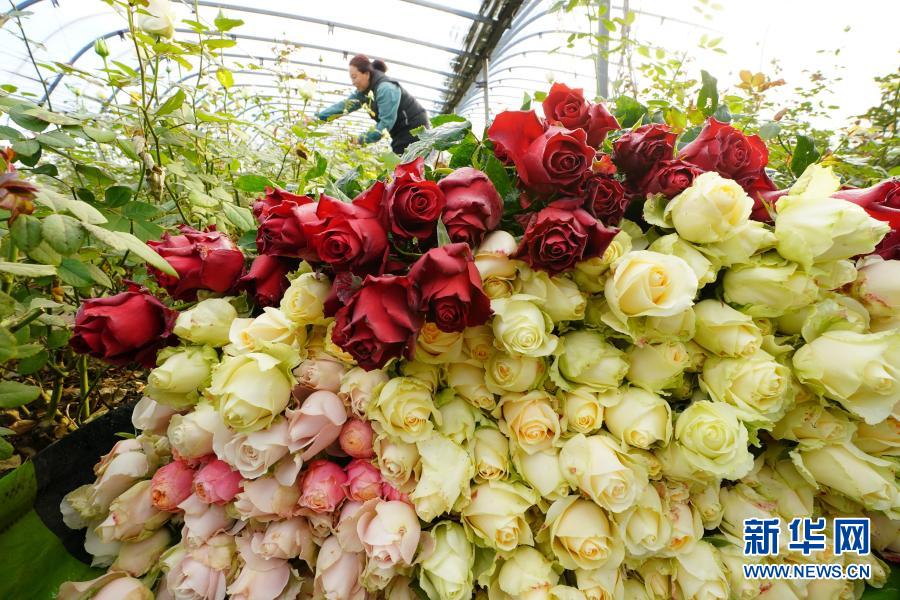 12月19日,滦州市茨榆坨镇谢各庄村农民在大棚内采摘玫瑰。