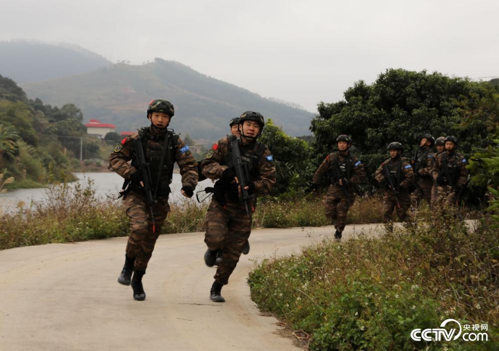 特战队员在进行五公里奔袭。