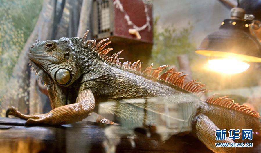 12月20日,两栖爬行馆里的动物在“享受”浴霸带来的温暖。