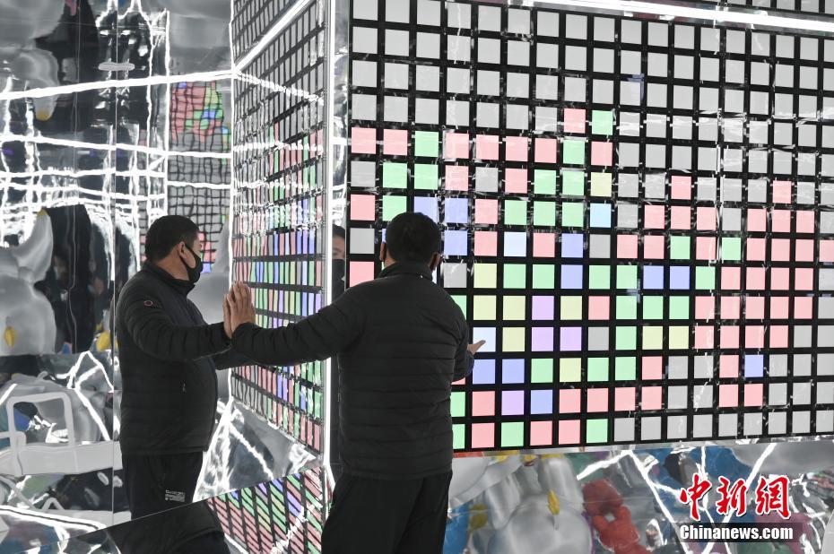 12月21日,北京,市民在“童真境界”艺术空间参观。近日,随着一座“来自2045年”的时间旅行舱“降临”在北京王府井东方新天地,时间旅行展正式拉开帷幕。顾客可进入到船舱中,体验过去、现在、未来的不同时空。中新社记者 张兴龙 摄