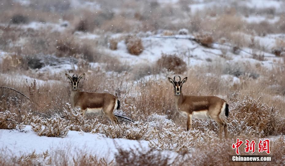新疆鹅喉羚雪后觅食成靓丽风景