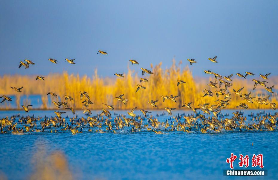 12月22日,江苏省宿迁市泗洪县,百万只候鸟云集洪泽湖湿地。洪泽湖湿地是国家级自然保护区,总面积达75万亩,是华东地区最大的淡水湿地,这里水质优良、草木繁茂、水产丰富,是候鸟迁徙途中的重要驿站,每年10月都有大批候鸟来此越冬,次年3月才逐渐离去。近年来,该县不断加大环境保护与修复力度,加上人们爱鸟、护鸟意识逐步增强,鸟类数量逐年增多,种群数也增加到206种。 中新社发 张连华 摄