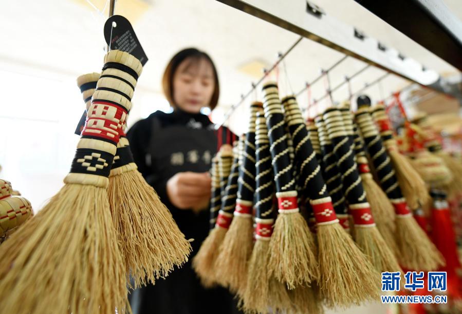 12月24日,廊坊市安次区仇庄乡熊营村村民在整理笤帚。新华社记者 王晓 摄