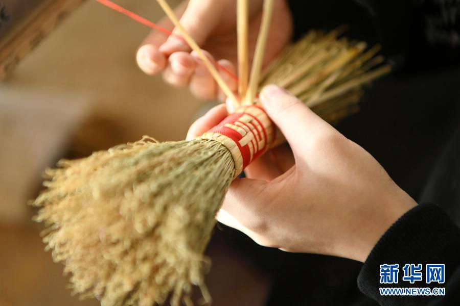 12月24日,廊坊市安次区仇庄乡熊营村村民在制作笤帚。新华社记者 王晓 摄