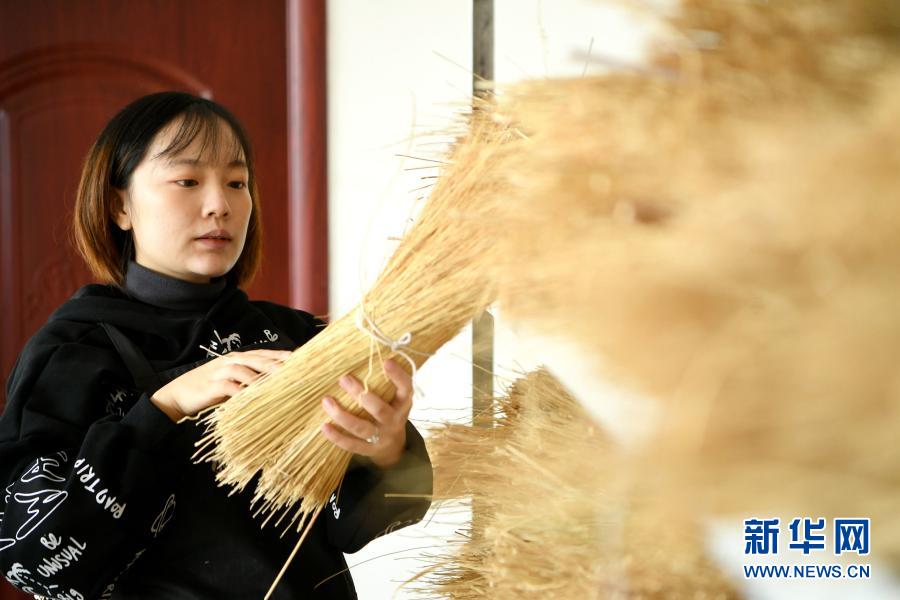 12月24日,廊坊市安次区仇庄乡熊营村村民在挑选笤帚材料。新华社记者 王晓 摄