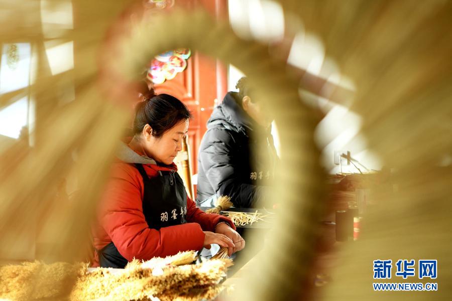 12月24日,廊坊市安次区仇庄乡熊营村村民在制作笤帚。新华社记者 王晓 摄