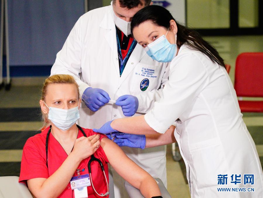 12月27日,在波兰首都华沙一家医院,一名医生接种新冠疫苗。