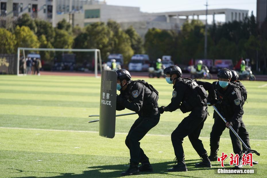 12月27日,在《中华人民共和国反恐怖主义法》颁布实施五周年之际,云南省“反恐怖宣传教育进校园”系列活动启动仪式在昆明举行,并在现场进行反恐处置、救护救援、应急疏散等演练,同时展示多种反恐装备。图为反恐处置演练现场。中新社记者 刘冉阳 摄