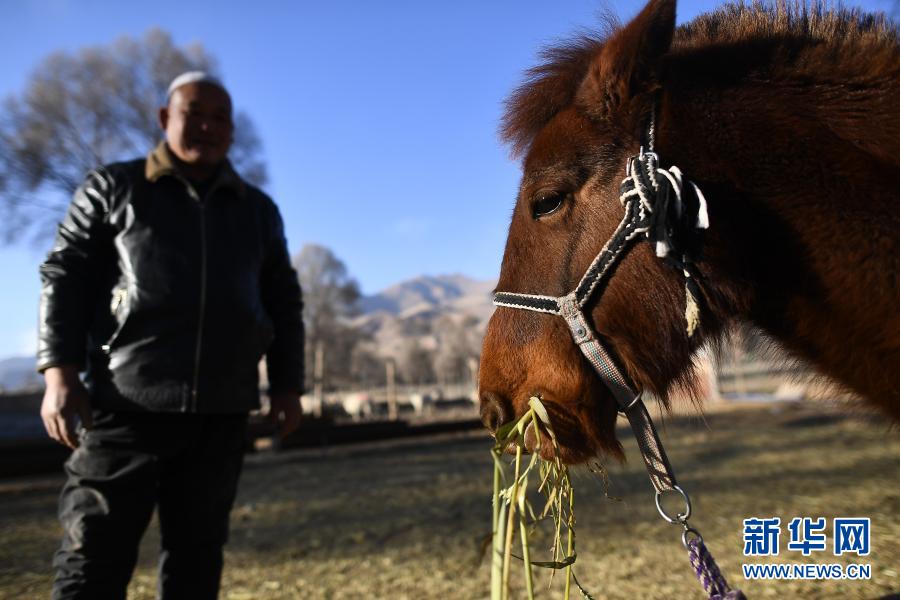 赵学文在家中喂马(12月9日摄)。新华社记者 张宏祥 摄
