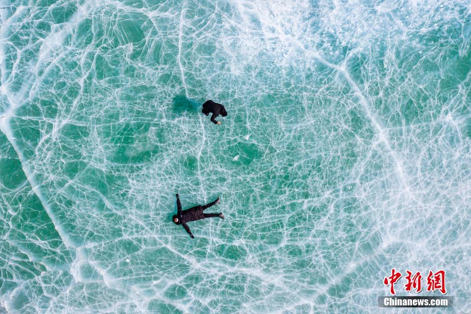 图为参与者们在洛堆峰脚下的冰湖拍照游玩。中新社记者 何蓬磊 摄