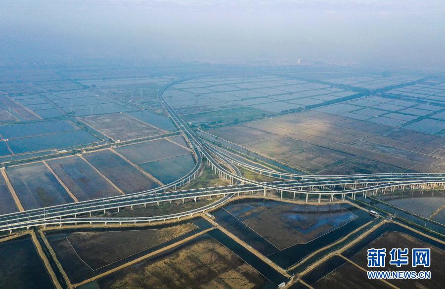 位于汕头市潮阳区的潮汕环线桑田互通立交(12月28日摄,无人机照片)。