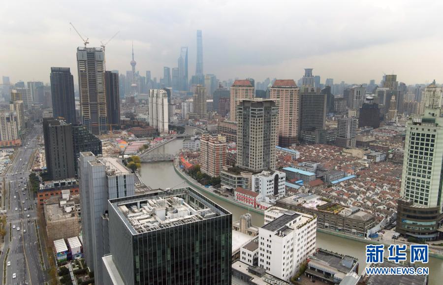 12月29日,从空中俯瞰苏州河从城市楼群中穿过(无人机照片)。新华社记者 方喆 摄