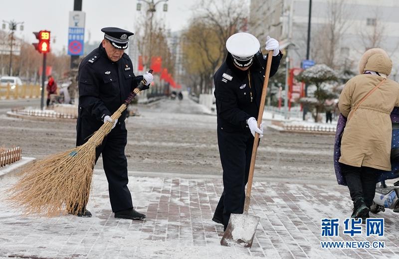 12月28日夜间,山东省梁山县普降雨雪,梁山县交警大队根据恶劣天气预案,在29日早7点就全员上岗上路执勤,清扫积雪,救援群众,成为县城一道靓丽的风景。