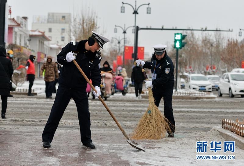 12月28日夜间,山东省梁山县普降雨雪,梁山县交警大队根据恶劣天气预案,在29日早7点就全员上岗上路执勤,清扫积雪,救援群众,成为县城一道靓丽的风景。