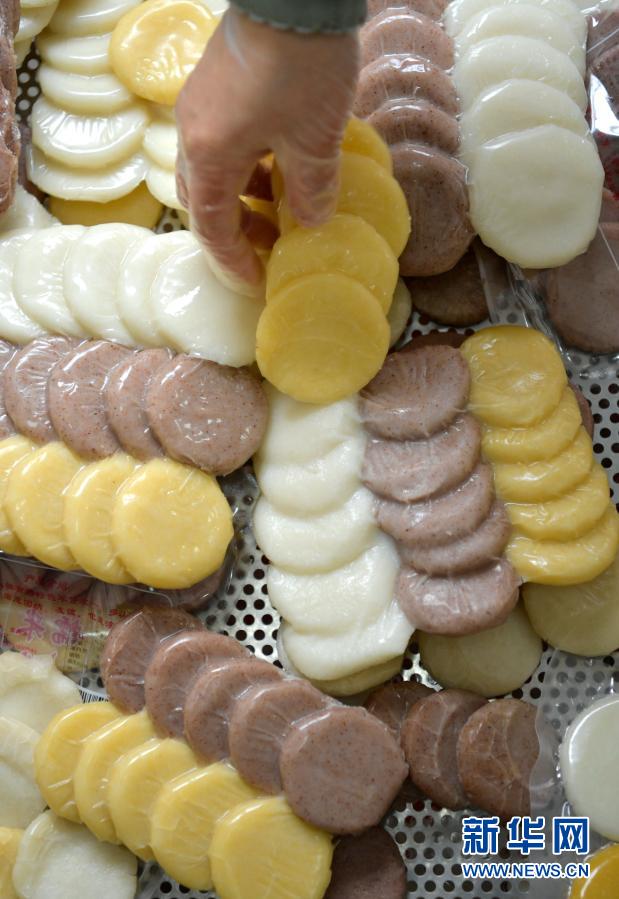 新年临近,湖北省恩施土家族苗族自治州进入传统美食糍粑的生产旺季。在宣恩县万寨乡伍家台易地扶贫搬迁安置小区,食品加工厂组织农民按照传统工艺手工制作糍粑,并通过电商平台销售,促进搬迁农民就业增收。
