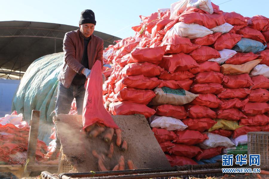12月30日,河南省焦作市温县中张王庄村的村民准备清洗胡萝卜。