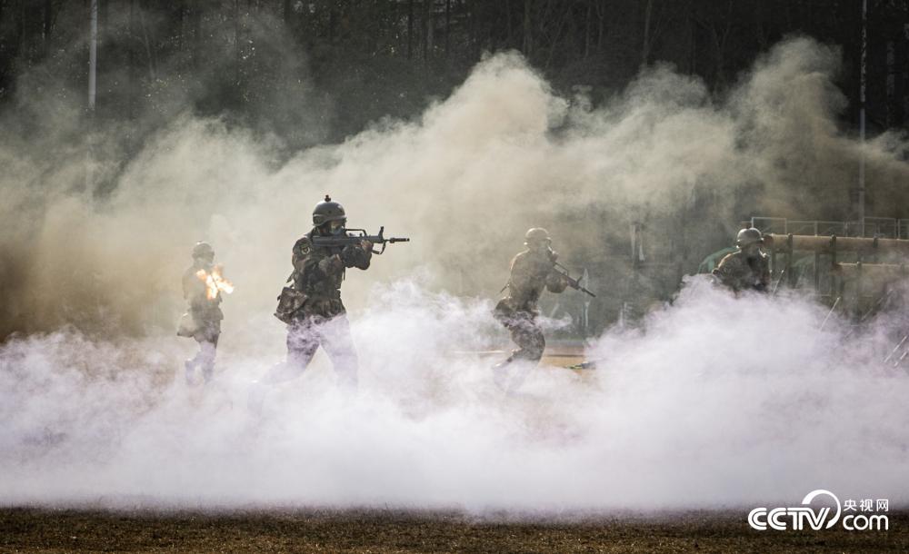 比武现场,红蓝双方激烈“交火”,突击队员们攀高墙、钻涵管,现场枪声、爆炸声不断;滚滚烟尘外,多种型号的电子对抗装备悄然而动,与敌人电磁空间内展开无声较量。